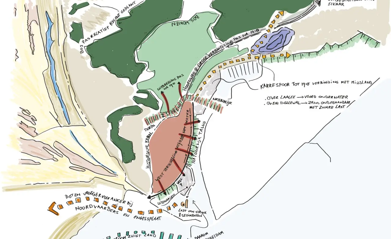 Het plangebied bestaat uit zes deelgebieden, van de Kom tot en met de passantenhaven. De inrichting ervan moet rechtdoen aan West-Terschelling als dorp met een rijke, gelaagde geschiedenis. Als studiegebied is het hele eiland onder de loep genomen. Zo is inspiratie gehaald uit de verhalen, gewoontes en gebruiken van het eiland, de geschiedenis van de plek, dorp overstijgende landschappelijke structuren en stromen.