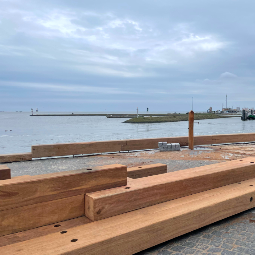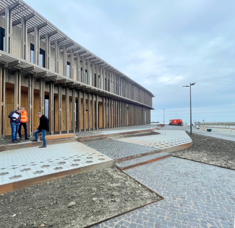 Gisteren was de vooroplevering van het Werelderfgoedcentrum Waddenzee in Lauwersoog. Een volgende stap in de realisatie van de buitenruimte. Samen met het team stemden we de laatste details af.